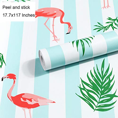 Taogift Carta da parati autoadesiva in vinile a righe bianche e blu a righe con fenicottero a contatto per pareti armadi mensole cassettiere mobili artigianato decorazione della stanza rimovibile