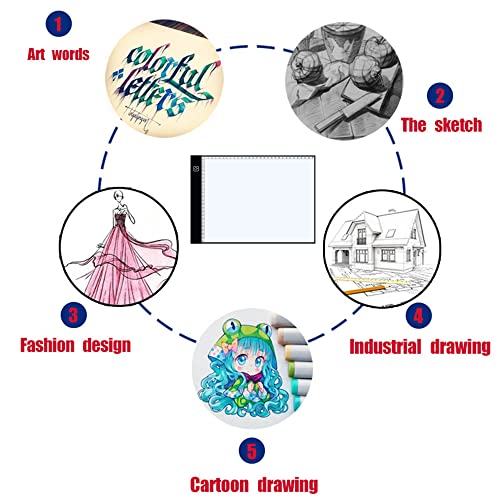 【DESIGN ULTRA SOTTILE】Supporto per illuminazione a LED con scala, dimensioni complessive - 335 × 235, area di emissione della luce - 305 × 235 mm. La scheda a emissione di luce A4 adotta una scheda acrilica, che ha un'elevata trasmissione della luce ed è più sottile, leggera e resistente. La carta da disegno da 500 g si allunga perfettamente.