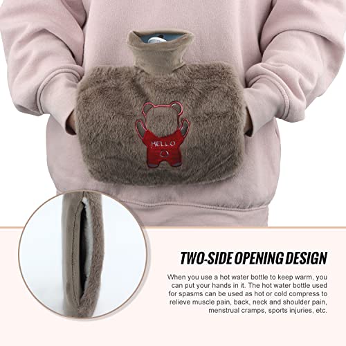 Taoyoule Bottiglia di Acqua Calda con Tasca a Mano Mano Riscaldante Pad con Morbida Copertura di Peluche per Hot Compress, Collo Spalla Dysmenorrhea Pain Relief, Caffè