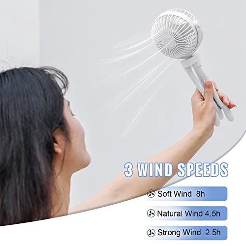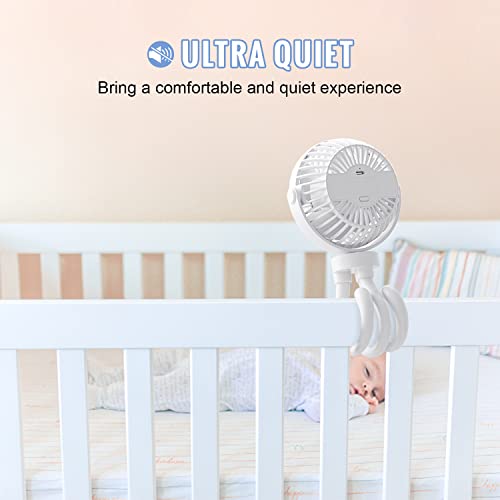 Taoyoule Ventilatore Portatile Portatile Ventilatore Per Passeggino Ricaricabile Mini Ventilatore Da Scrivania Girevole a 360° Con Treppiede Flessibile Fissato Sul Passeggino, Bianco