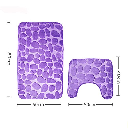 Lot de 2 tapis de bain, tapis de sol sur pied, doux et confortables, en mousse à mémoire de forme respirante, absorbant, avec dossier antidérapant. Pourpre