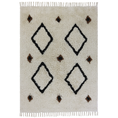 Dettagli del prodotto: Tappeto a pelo alto in beige con motivo a rombi Con frange alle due estremità Per un'atmosfera accogliente nella camera dei bambini Realizzato in cotone tufted Realizzato a mano Materiale e cura: Materiale: 100% cotone tufted, puro cotone Istruzioni per la cura: aspirare regolarmente Lavabile in lavatrice a 30 °C Utilizzare un detergente delicato Asciugare a freddo subito dopo il lavaggio Dimensioni e peso: Lunghezza x larghezza: 160 x 120 cm Peso: 4 kg Incluso nella consegna: 1 tappeto per bambini Attenzione: la decorazione non è inclusa nella fornitura.