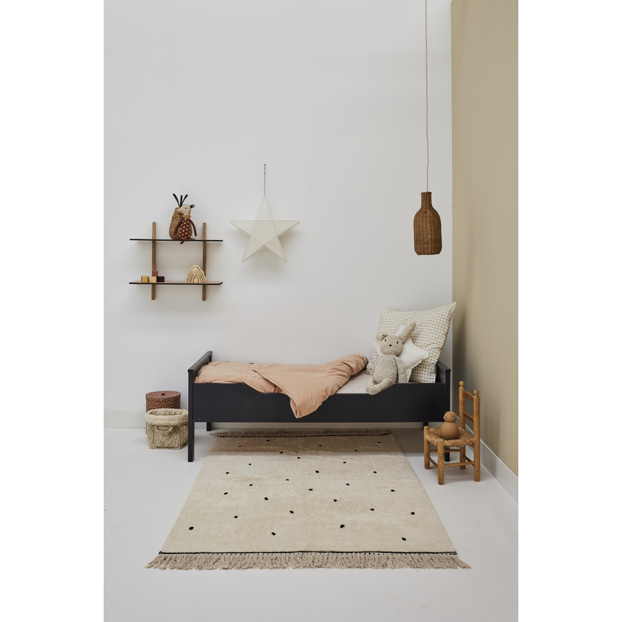 Dettagli del prodotto: Tappeto a pelo corto con punti neri Con frange e cuciture colorate a contrasto su entrambe le estremità Per un'atmosfera accogliente nella camera dei bambini Realizzato in cotone tufted Realizzato a mano Materiale e cura: Materiale: 100% cotone tufted, puro cotone Istruzioni per la cura: aspirare regolarmente Lavabile in lavatrice a 30 °C Utilizzare un detergente delicato Asciugare a freddo subito dopo il lavaggio Dimensioni e peso: Lunghezza x larghezza: 170 x 120 cm Peso: 3,7 kg La consegna include: 1 tappeto per bambini Attenzione: la decorazione non è inclusa nella fornitura.