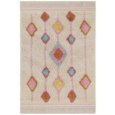 Dettagli del prodotto: Tappeto a pelo alto in beige con motivo a rombi Con frange alle due estremità Per un'atmosfera accogliente nella camera dei bambini Realizzato in cotone tufted Realizzato a mano Materiale e cura: Materiale: 100% cotone tufted, puro cotone Istruzioni per la cura: aspirare regolarmente Lavabile in lavatrice a 30 °C Utilizzare un detergente delicato Asciugare a freddo subito dopo il lavaggio Dimensioni e peso: Lunghezza x larghezza: 170 x 120 cm Peso: 4,5 kg La consegna include: 1 tappeto per bambini Attenzione: la decorazione non è inclusa nella fornitura.