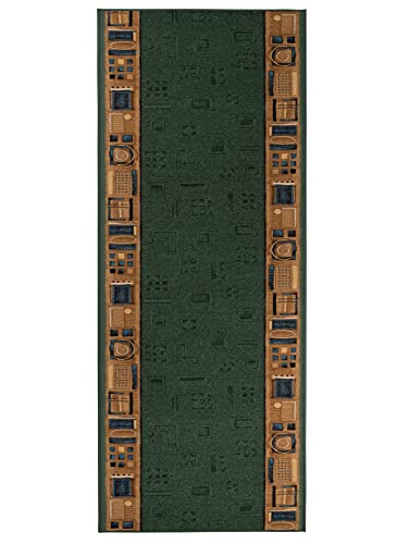 TAPISO Agadir Tappeto Passatoia Runner Antiscivolo Pelo Corto Al Metro Design Moderno Motivo Geometrico Astratto Verde Beige Corridoio Cucina Ingresso Entrata Ufficio 100 x 380 cm