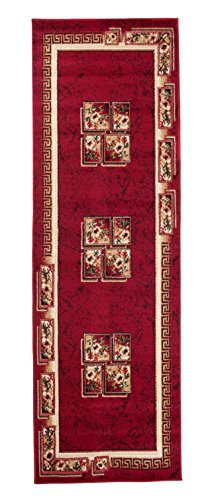 TAPISO Atlas Tappeto Passatoia Camera Corridoio Salotto Classico Beige Rosso Disegno Floreale A Fiori A Quadretti 80 x 200 cm