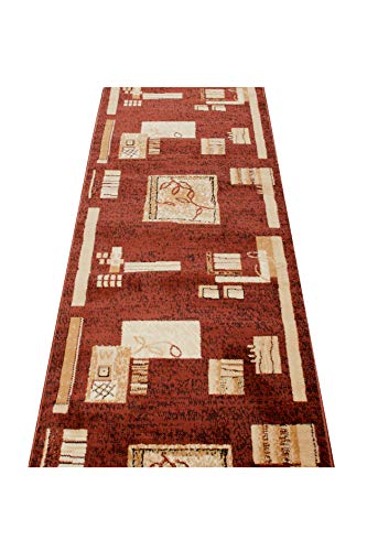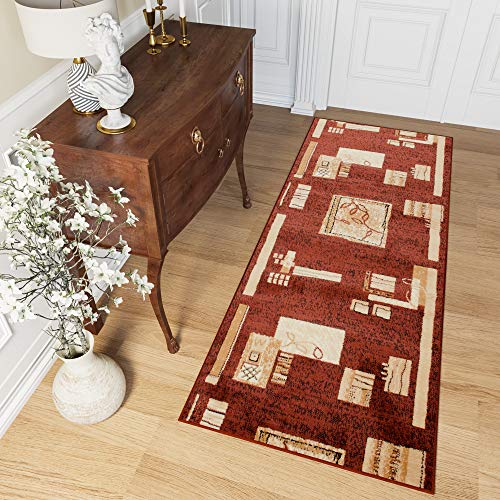 TAPISO Atlas Tappeto Passatoia Corridoio Moderno Beige Marrone Crema Astratto A Quadri Morbido 80 x 300 cm