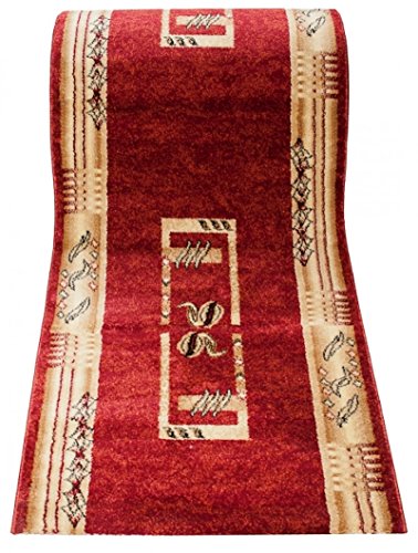 TAPISO Dorian Tappeto Passatoia al Metro Corridoio Soggiorno Salotto Rosso Classico Florelae Fiori Geometrico A Pelo Corto 90 x 600 cm