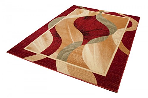TAPISO Dorian Tappeto Saloto Soggiorno Moderno Tradizionale Stanza da Letto Rosso Beige Geometrico Astratto Ondato 110 x 195 cm