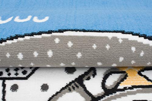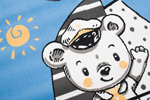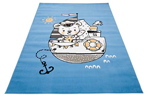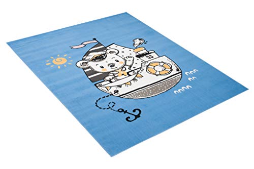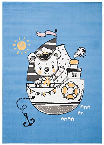 TAPISO Jolly Tappeto Bambini Cameretta Bimbi Gioco Colorato Animali Orsetto Nave Multicolore Blu A Pelo Corto 200 x 300 cm