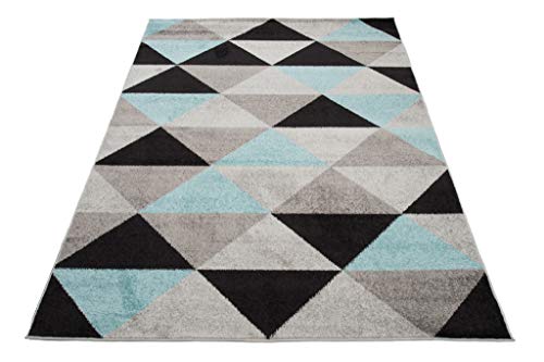 TAPISO Lazur Tappeto Soggiorno Pelo Corto Design Moderno Motivo Geometrico Astratto Triangoli Grigio Azzurro Cameretta Stanza Ragazzi Salotto Camera Oeko-Tex 120 x 170 cm