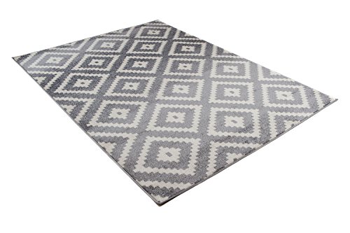 TAPISO Maroko Tappeto Camera Soggiorno Salotto Moderno Grigio Crema Geometrico Mosaico Quadri A Pelo Corto 200 x 290 cm