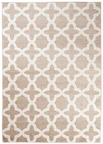 TAPISO Maroko Tappeto Camera Soggiorno Salotto Moderno Marocchino Beige Ecrù Geometrico Mosaico A Pelo Corto 160 x 220 cm