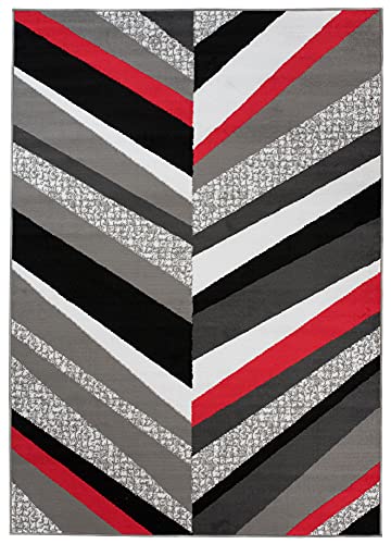 TAPISO Maya Tappeto Soggiorno Pelo Corto Design Moderno Motivo Astratto Geometrico Strisce Tonalità Grigio Rosso Camera da Letto Cameretta Ufficio Salotto Oeko-Tex 140 x 200 cm