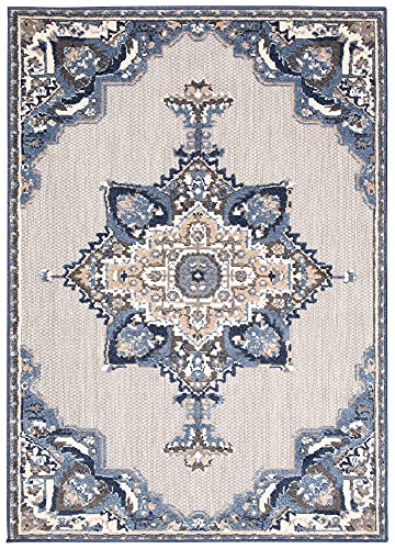 TAPISO Patio Tappeto Pelo Corto Soggiorno Cucina Design Moderno Motivo Astratto Vintage Tradizionale Effetto 3D Blu Beige Sala Salotto Balcone Indoor Interno Oeko-Tex 160 x 220 cm
