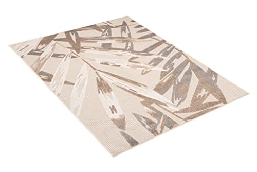 TAPISO Patio Tappeto Pelo Corto Soggiorno Cucina Design Moderno Motivo Floreale Foglie Effetto 3D Tonalità Beige Sala Salotto Balcone Indoor Interno Oeko-Tex 140 x 200 cm