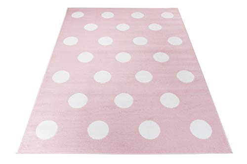 TAPISO Pinky Tappeto Gioco Bambini Pelo Corto Design Moderno Motivo Astratto a Pois Bianco Rosa Sicuro Oeko-Tex Morbido Cameretta Stanza Ragazzi Camera Bambina 140 x 200 cm
