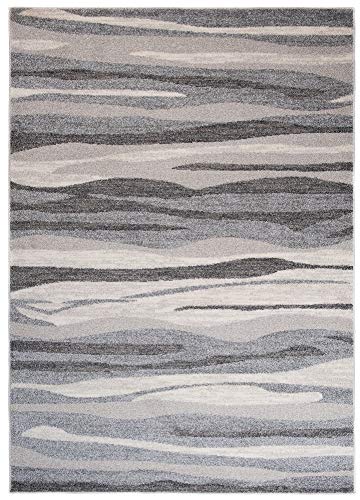 TAPISO Sari Tappeto Camera Soggiorno Salotto Moderno Colore Beige Grigio Disegno Onde Facile da Pulire 180 x 260 cm