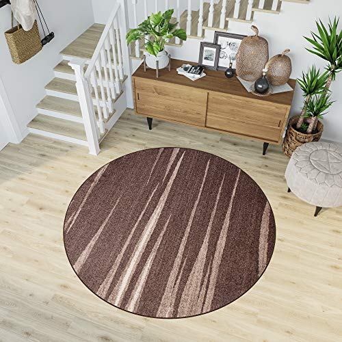 TAPISO Sari Tappeto Rotondo Soggiorno Salotto Moderno Corridoio Marrone Scuro Astratto A Pelo Corto 150 x 150 cm