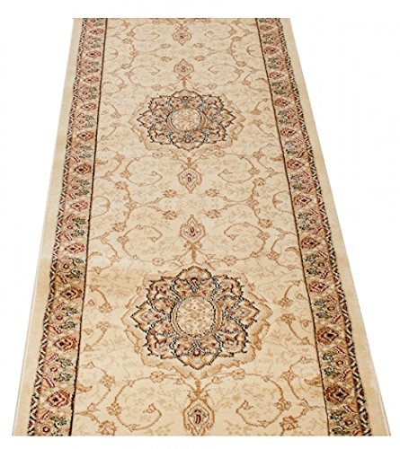 TAPISO Yesemek Tappeto Passatoia Corridoio Tradizionale Colore Crema Beige Disegno Classico Ornamento Decorativo Facile da Pulire 60 x 1500 cm