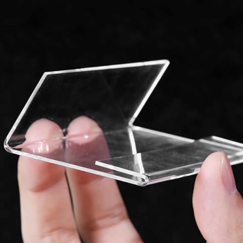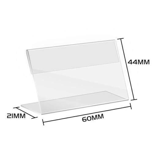 Tapkua 50 Pezzi Porta Etichette Trasparente, (6 x 4 cm) Mini Porta Cartellini in Acrilico, Supporto Espositore in Plastica a Forma di L, Adatto per Scaffali di Negozio/Panetteria/Drogheria/Porta-QR