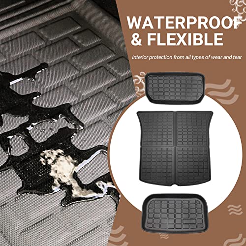 YEE PIN 3 tappetini per bagagliaio, compatibili con Tesla Model Y 2021 2022 2023, tappetino per bagagliaio anteriore e posteriore in TPE, modello Y, tappetino in gomma con bordo alto, antiscivolo