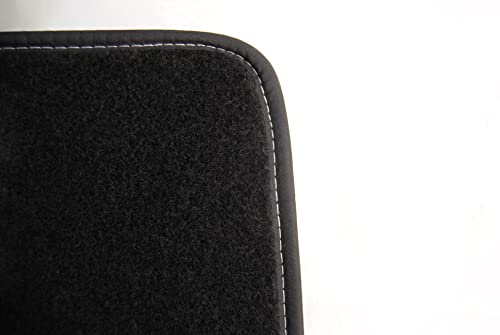 Materiale: Tappetini realizzati in moquette di alta qualità. Resistente ma morbida al tatto garantisce un'ottima durata nel tempo, nonostante i frequenti calpestamenti e l'usura quotidiana. Inodore, ignifuga e facile da lavare. Il fondo in gomma granulato antiscivolo garantisce l'aderenza al pianale ed impedisce all'acqua di penetrare nell'auto. Realizzati con un design che garantisce comfort ed eleganza. 100% Made in Italy.