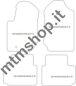 MTM Tappetini per Ford Ranger Super Cab 2012-10.2022 su Misura Sagomati come Originali, Battitacco in Moquette, Bordo Antiscivolo, cod. One 1166
