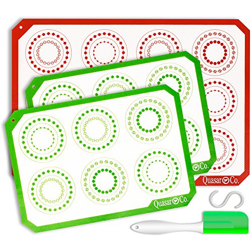 Set di 3 tappetini da forno in silicone - Spatole in silicone e gancio a S in plastica | 1 tappetino grande e 2 piccoli | Riutilizzabili | Antiaderente | Resistente al calore | di Quasar & Co