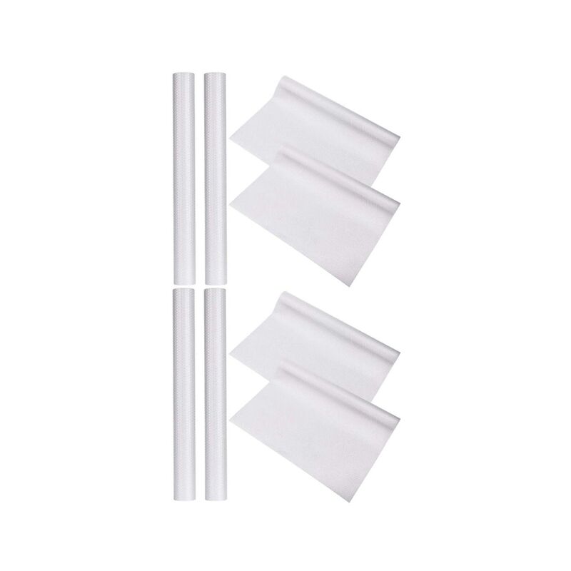 Tappetini per frigorifero da 8 rotoli fodera per ripiano impermeabile antiscivolo fai da te EVA armadio scaffale per frigorifero Pad 45x150cm Taglio fai-da-te-4 rotoli di rivestimento nella confezione, ogni rotolo è 45x150cm. Può essere tagliato facilmente con le forbici a qualsiasi dimensione e forma per adattarsi all'interno del frigorifero o dello scaffale o come tovaglietta e sottobicchiere, piatto e facile da installare.Multifunzione e facile da pulire-facile da pulire con una spugna o un panno umido anche per macchie di olio, lavabile e ad asciugatura rapida per il riutilizzo. Perfetto per cassetti, frigoriferi, scaffali, armadietti, armadietti, controsoffitti, tavoli, armadi, tovagliette e sottobicchieri ecc.Realizzato in materiale EVA, è antiscivolo, antimuffa, impermeabile e antiolio.Antiscivolo, non adesivo, non strappabile come rivestimento di carta, impermeabile, Anti-olio e resistente alle macchie. Proteggi i tuoi cassetti dai graffi e manici nuovi.Anti-slittamento e