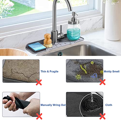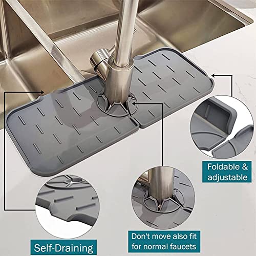 Tappetini per Lavello, 2 Tappetini per Rubinetto in Silicone, Vassoio Raccogligocce con Manico per Rubinetto in Silicone, per Lavabo da Cucina, Bagno e Piano di Lavoro