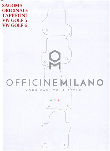 4 Tappetini in Moquette Nero su Misura per Volkswagen Golf Serie 5 dal 2003 al 2009 e Serie 6 dal 2008 al 2012 OFFICINEMILANO. 2 Anteriori + 2 Posteriori. Sistema di Fissaggio Originale.
