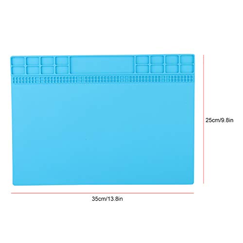 Tappetino Antistatico Multiuso Resistente Al Calore, 35x25cm Tappetino Per Saldatura In Silicone, 500 ℃ Per Orologio Telefono Riparazione Elettronica Piattaforma Di Manutenzione, Azzurro