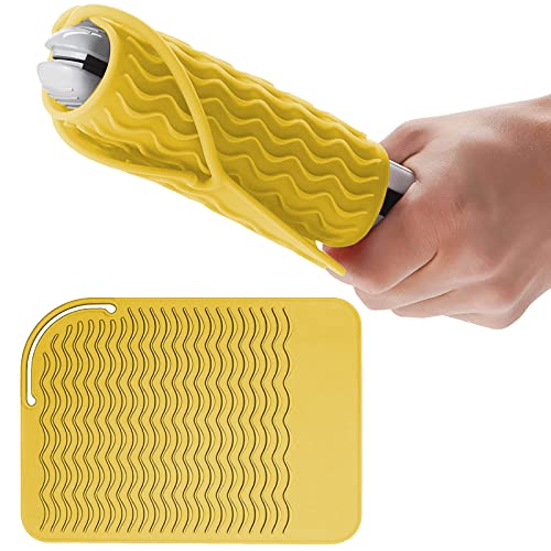 Design antiscivolo: Il design unico della struttura ondulata della federa in silicone resistente al calore fornisce resistenza al calore, consentendo al vostro strumento di riscaldamento di evitare scivolamento quando afferra la superficie. È ideale per piastre per capelli, riccioli, permanenti, asciugacapelli e altri strumenti termici.