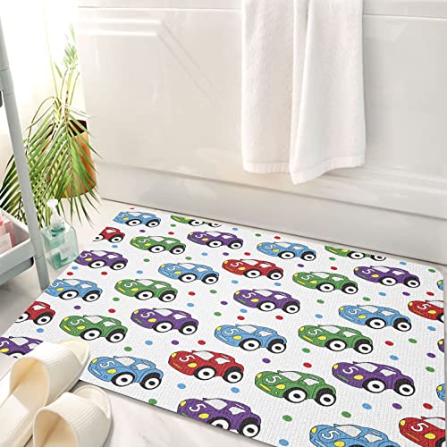 Tappetino Doccia Assorbente Antiscivolo,Automobili variopinto modello divertente del fumetto con automobili con design ripe,Soffice Tappeti Bagno Microfibra,Tappetini per il Bagno Assorbente D'acqua
