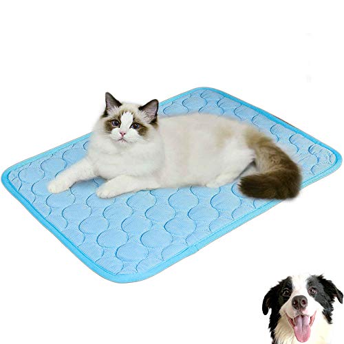 Sicuro per gli animali domestici: dotato di un materiale atossico che è sicuro per animali domestici, adulti, bambini e per l'ambiente. Realizzato in 3 strati, fresca seta di ghiaccio, cotone di alta qualità e rete traspirante. Nessuna elettricità necessaria e rimanere in silenzio.