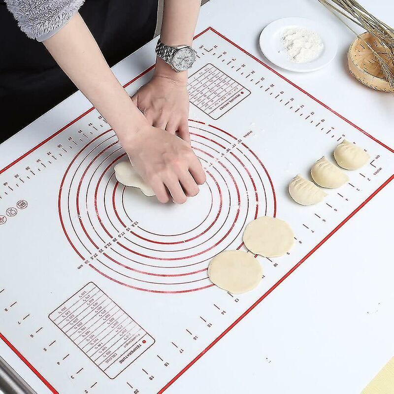 Materiale: silicone Peso: 0,14 kg Dimensioni: 60 * 40 cm La confezione include: 1 * pad per impastare Descrizione: 60 cm * 40 cm Dimensioni grandi: più grandi di altri tappetini sul mercato. Questo ti dà più spazio per stendere l'impasto ed evitare che la farina cada sul fondo. Antiscivolo: la parte posteriore del tappetino da forno è lucidata e ha un forte assorbimento, il cuscinetto per pasta può aderire saldamente al banco da lavoro o ad altre superfici, essere antiscivolo e ottenere una piena adesione. Antiaderente: questo tappetino è realizzato in silicone alimentare, questo tappetino da forno ha una superficie antiaderente ed è adatto per materiali appiccicosi. Con esso, puoi facilmente stendere pasta, torte, pizza, crosta di torta, pane, biscotti fatti in casa e pasta per biscotti. Design di misurazione: dotato di righello di misurazione e tabella di conversione delle unità che possono essere utilizzati per misurare la dimensione dell'impasto o la dimensione del fondente.