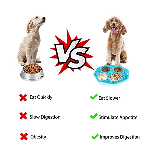 Design del quadrante: Il design del quadrante del tappetino per leccare il cane aiuta a controllare la quantità e il posizionamento di vari alimenti quando cospargiamo cibo per gatti, snack per cani, snack per cani o cibo umido sui nostri cuscinetti per leccare. Il motivo rialzato offre una varietà di opzioni di texture da aggiungere al tuo animale domestico da impiegare, non adatto per masticatori aggressivi.