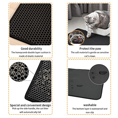 Tappetino Lettiera Gatto, Nero 45 * 60 cm Impermeabile, Antiscivolo, Pieghevole, Doppio Strato Tappeto Lettiera Gatto, Tappeto Lettiera,Tappetino Sabbia Gatto per a Gatti Grandi, Medi e Piccoli