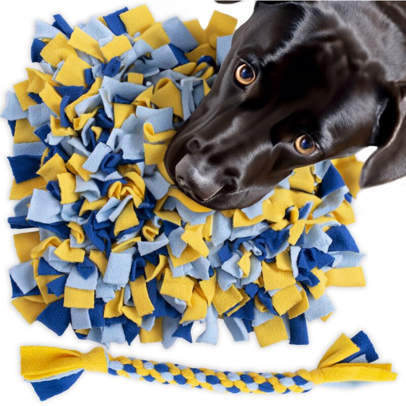 Tappetino olfattivo pieghevole JULIET Destinazione d'uso: per animali domestici: cani, gatti, conigli, ecc. | Colori: blu, giallo Sniffer è un innovativo tappetino olfattivo per il tuo cane, che gli offre intrattenimento e stimolazione mentale senza pari attraverso il magico mondo degli odori. Questo è uno strumento che coinvolge il senso dell'olfatto del tuo animale domestico a un livello completamente nuovo. Il tappetino Sniffer stimola gli istinti naturali del cane, sviluppando la sua intelligenza e offrendo divertimento. Ti consente di cercare dolcetti e ricompense nascoste, unendo divertimento e pensiero, il che supporta le capacità mentali del tuo cane. Sicurezza e qualità sono la nostra priorità. L'annusatore è realizzato con materiali durevoli e facili da pulire, garantendo un piacere d'uso duraturo. È sicuro per i cani e privo di sostanze nocive. Il tappetino Sniffer non solo fornisce un gioco attivo, ma aiuta anche a ridurre lo stress riproducendo il comportamento naturale