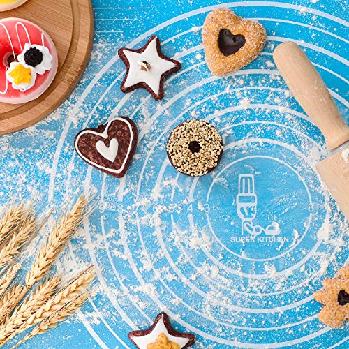【Design più Spesso】: Ha uno spessore di 1.3 mm e quasi due volte più spesso della maggior parte dei tappetini PASTICCERIA che è solo 0,7 mm. Il tappetino da 0,7 mm è troppo sottile e morbido. Il tappetino SUPER KITCHEN è più spesso e resistente, quindi non si increspa e non si muove mentre impasti la pasta. Il nostro tappetino per pasticceria di alta qualità è un accessorio da forno indispensabile per la tua cucina.