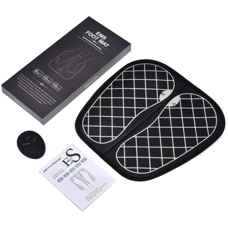 Un tappetino per i piedi con funzione EMS (stimolazione muscolare elettrica) emette impulsi elettrici tramite un telecomando e simula la sensazione di massaggio, impastamento e carezze su piedi, caviglie e polpacci. Questo migliora la circolazione sanguigna e può rafforzare i muscoli. Il tappetino pieghevole ha dieci diversi livelli di intensità e il tempo di utilizzo consigliato è di 15 minuti al giorno. Grazie alla parte inferiore antiscivolo, il tappetino poggia saldamente sul pavimento durante l'uso. - Tappetino con funzione EMS - Dieci diversi livelli di intensità - Migliora la tua circolazione sanguigna Specifiche: Colore: nero Materiale: poliestere Dimensioni: 31 x 0,5 x 30 cm Batteria: 2x AAA (non incluse) Livelli di intensità: 10 Spegnimento automatico: 12 min Frequenza: 1~100Hz Tensione: CC 3V Uscita: max. 9,8 mA Temperatura consigliata nell'area di utilizzo: ca. 15-35°C La confezione contiene: 1x tappetino per i piedi 1x telecomando 1x Manuale dell'utente (inglese)