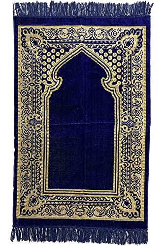 Tappetino per preghiera in stile turco/ottomano + perline di preghiera Tasbeh morbido camoscio con motivo orientale Janamaz Sajadah regalo 110 x 66 cm (blu)