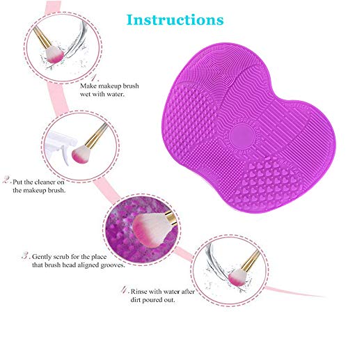 Tappetino per pulizia pennelli da trucco, in silicone, con ventose forti, colore: rosa e viola