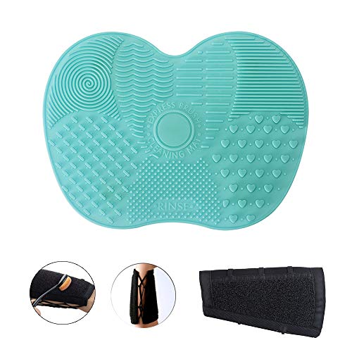 Tappetino per pulizia in silicone, set di pulizia Mysweety per pennelli per trucco, 1 pezzo di panno per lavaggio cosmetico con ventosa-ciano + 1 pezzo di lavavetri sgrassante