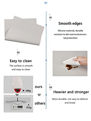 2 mm di spessore: Molto spesso. Si stende piatto senza pieghe, con design antiscivolo, da posizionare sotto forno a microonde, friggitrice, fornello a induzione, fornetto, macchinetta per il caffè, per proteggere i piani di lavoro della cucina e altre superfici da versamenti, graffi, olio, calore, ecc.