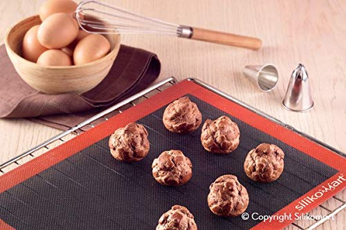 Tappeto in silicone microforato con anima in fibra di vetro ideale per la cottura di éclair, biscotti, bignè, petits-fours, pane e pizza. Grazie ai fori presenti il calore viene trasmesso in modo uniforme su tutta la superficie del tappetino garantendo una cottura ottimale sia sulla parte superiore che quella inferiore delle preparazioni.