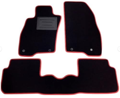 ASC tappetino tappeto tappetti auto compatibili con FIAT Punto EVO-EASY dal 2012 al 2019 tappeti auto in moquette posteriore intero, bordo rosso,bottoni e battitacco