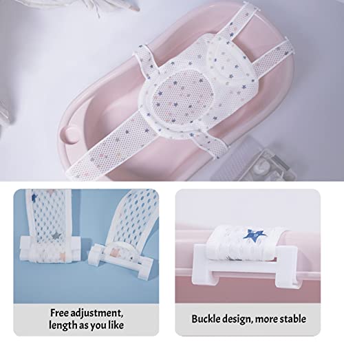 Tappetino per vasca da bagno con stelle per neonato in rete galleggiante per vasca da bagno, cuscino per vasca da bagno per neonati da 0 a 18 m, 5 cinture, con stelle