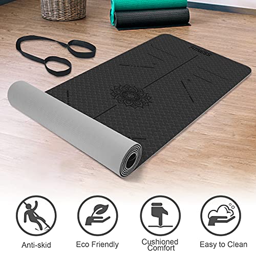 Tappetino Yoga, Tappetino da Yoga in TPE Antiscivolo Impermeabile per l'allenamento, Tappetino per Esercizi Casa e Palestra, Ecologico Tappetino Fitness per Ginnastica, Pilates 183 x 61 x 0.6CM